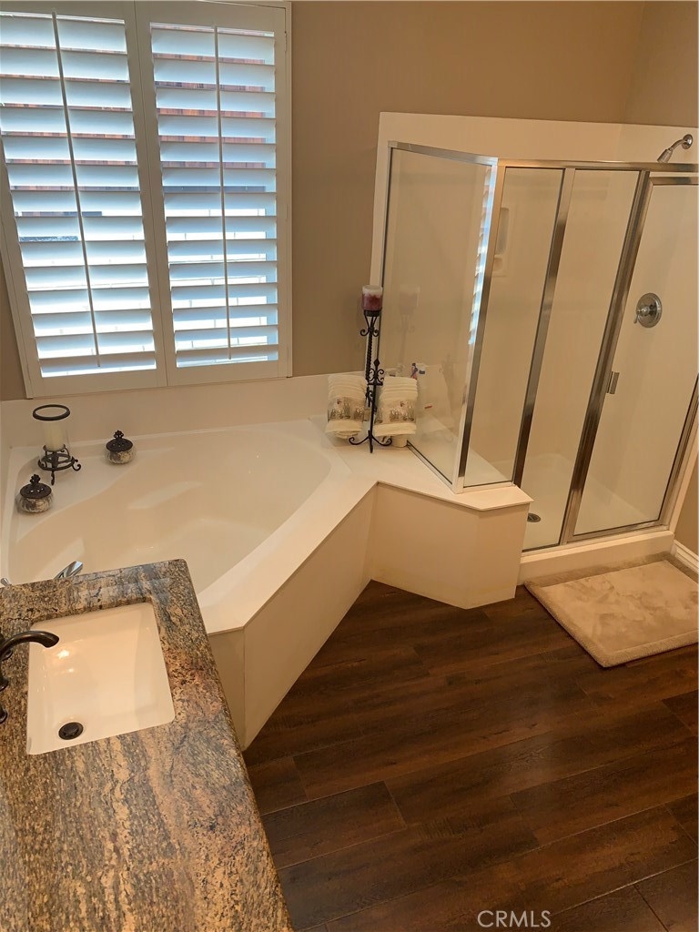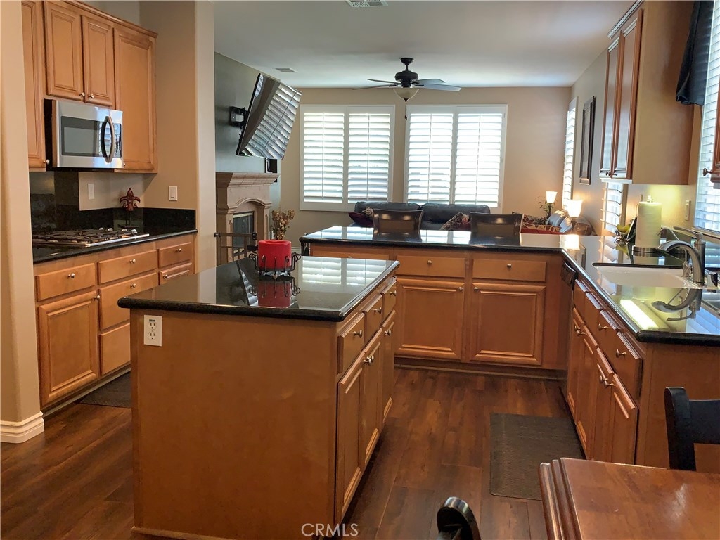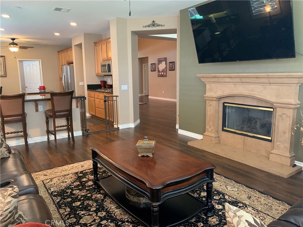 FOUR SEASONS 55+. TURNKEY! GREAT LOCATION AND GREAT CURB APPEAL. SECURITY IRON GATE IN FRONT YARD. LEADED GLASS FRONT DOOR. 2 BEDROOMS, OFFICE, 2 BATHS, FORMAL LIVING ROOM, FAMILY ROOM, FORMAL DINING ROOM. GORGEOUS WOOD FLOORING THROUGHOUT. PLANTATION SHUTTERS THROUGHOUT. CATHEDRAL CEILINGS. GRANITE COUNTERTOPS, LARGE KITCHEN WITH ISLAND, STAINLESS STEEL APPLIANCES, DOUBLE OVENS, REVERSE OSMOSIS, LOTS OF STORAGE CABINETS, ISLAND, BREAKFAST NOOK AND BREAKFAST BAR. KITCHEN OVERLOOKS FAMILY ROOM WITH FIREPLACE. LAUNDRY ROOM WITH DEEP SINK AND STORAGE CABINETS. NEW WATER SOFTENER IN TWO CAR GARAGE. IN BACKYARD: STAMPED CONCRETE, LARGE ALUMAWOOD PATIO COVER WITH SKYLIGHT. BACKYARD FACES EAST. YOU WILL ENJOY SHADE IN THE AFTERNOONS ALL SUMMER. WHEN YOU COME TO VISIT THIS BEAUTIFUL HOME, DO NOT HESITATE TO STOP AT THE LOGE. THE LODGE HOUSES: BALLROOM, LIBRARY, COMPUTER ROOM, GAME AND CARD ROOMS, GYM, BEAUTY SALON, TENNIS, PADDLE TENNIS, SHUFFLEBOARD, BOCCE BALL, HORSESHOE COURTS, HEATED POOL AND JACUZZI. THE GROUNDS OF THE LODGE ARE BEAUTIFULLY MAINTAINED ALL YEAR ROUND.